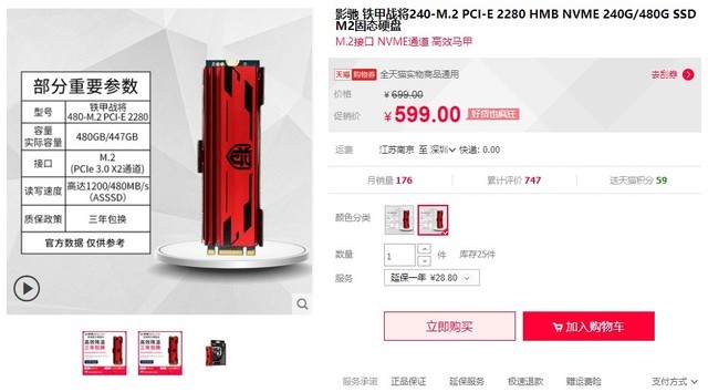 采用NVMe协议、走PCIE通道的M.2 SSD凭借强大的性能,逐渐成为SSD市场的主流。但它们在提供超高读写速度的同时也产生了严重的发热问题。在这种背景下,影驰铁甲战将 M.2 PEI-E HMB SSD顺势而生,卓越的温控能力完美解决了这一痛点。最近新推出了480GB的大容量版本在天猫只卖599元,想入手的玩家可以移步购买。
